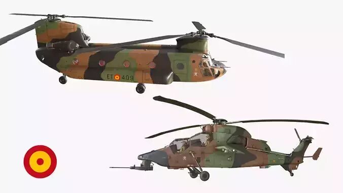 Collection of Spanish Army Helicopters.Buying this collection you save 30% .Each helicopter has Static and Complex Animation variants.List of included models: