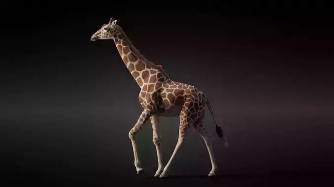 This is a high-quality giraffe model with textures, rigging, animation, and hair. It is made with Blender and Cycles renderer at real-world scale.