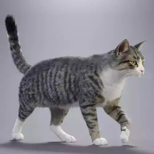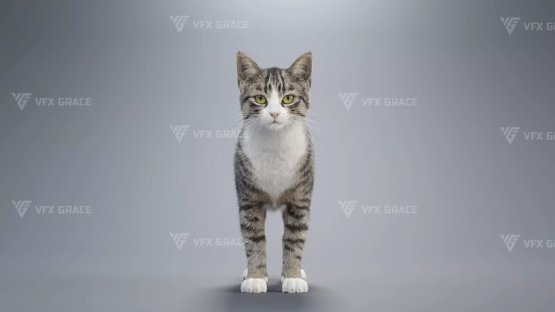 This white tabby cat 3D Model is crafted specifically for high-quality visual projects, combining a realistic appearance with animation-ready usability. The model features 4K UDIM textures, with separately painted skin and hair maps to ensure fine, natural detail even in close-up shots. The grooming system is meticulously designed based on real feline anatomy, offering well-defined layers and natural hair flow for excellent rendering results.