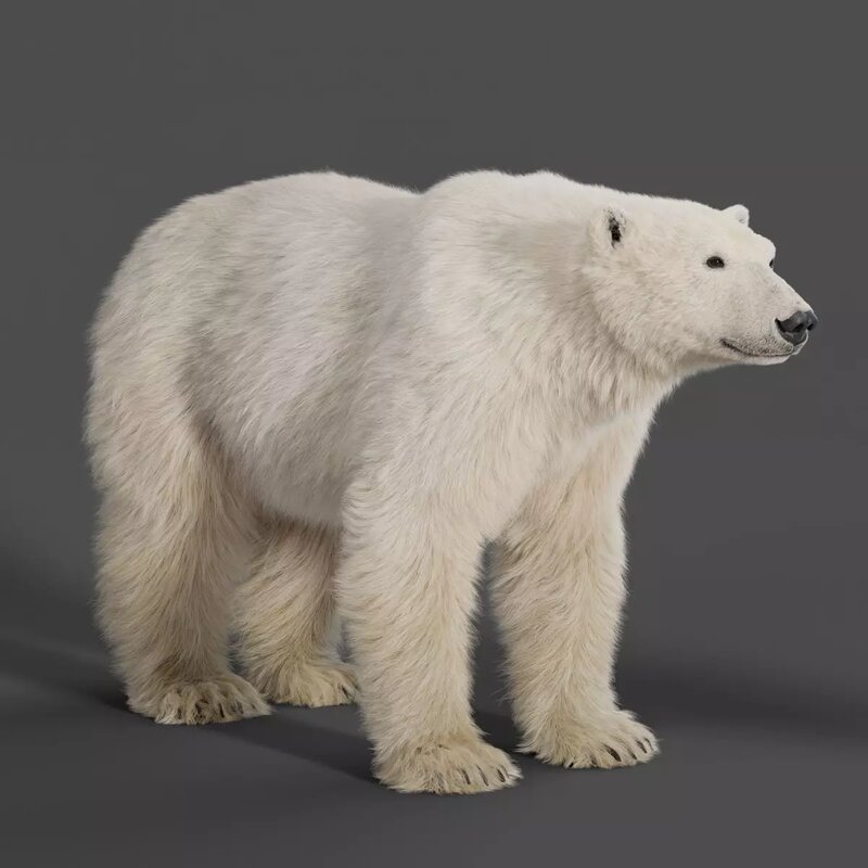 This is a high-quality polar bear model with textures, hair, rigging, and animations. The body features detailed muscle structure and a realistic oral cavity, with most textures being 4K resolution. In the real world, polar bears have dense, fluffy fur, and to replicate this, our team employed extensive particle systems. This ensures that the fur achieves a highly realistic, film-grade quality suitable for close shots and close-ups. Additionally, the model comes with four realistic animations. This model is made with Blender and Cycles renderer at real-world scale.