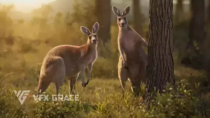 This is a high-quality female kangaroo model with 4K UDIM maps, fur, rigging, and a realistic animation. The model also has a realistic oral cavity and muscle structure. We created a complex fur system with Blender to make the effect realistic, and there is a detailed facial expression controller system. The model is made with Blender and Cycles renderer at real-world scale.