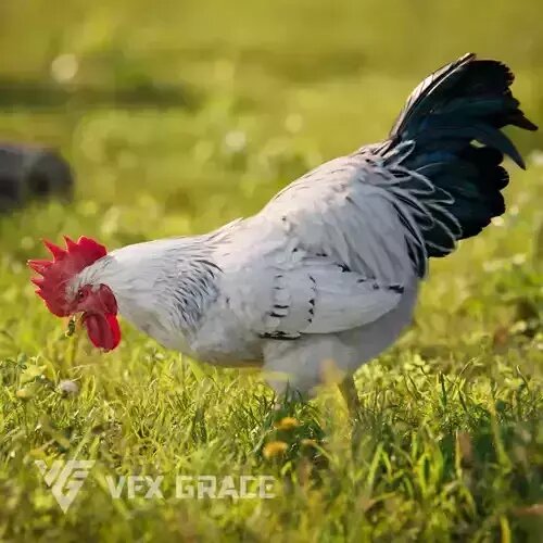 This is a high-quality white cock model with textures, fur, rigging and animations. The textures apply PBR, and the body feathers are made as facets to speed up the rendering and make operations smooth. The rigging follows real bones. The model is made with Blender and Cycles renderer at real-world scale.