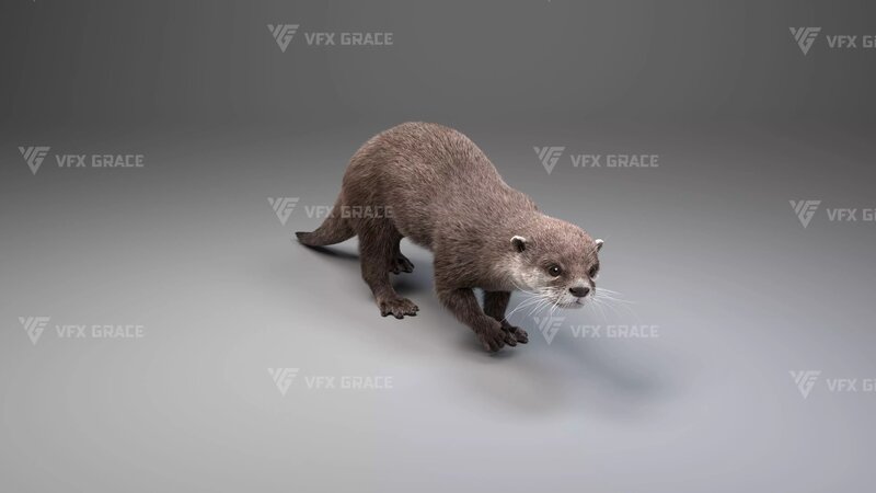 This meticulously crafted, realistic otter character was created in Blender and rendered with the Cycles renderer. It includes the model, textures, hair, rigging, and four realistic animations. The model was built based on real anatomical references and features a detailed oral cavity. Most textures are in 4K resolution. The hair was carefully groomed to follow natural flow and volume, giving the otter a rich and dimensional appearance that fits seamlessly into natural environments. The character includes a comprehensive rigging system that ensures expressive performance, making it easy to integrate into various production pipelines while presenting a lifelike and vivid character.