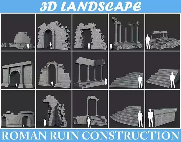 Low poly Ancient Roman Ruin Construction Pack - White Granite Low-poly 3D model