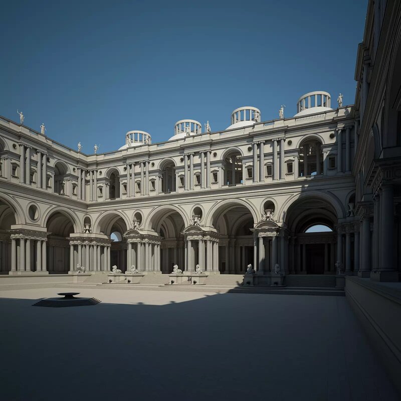 Highly detailed 3D model of a classical style courtyard / cloister.