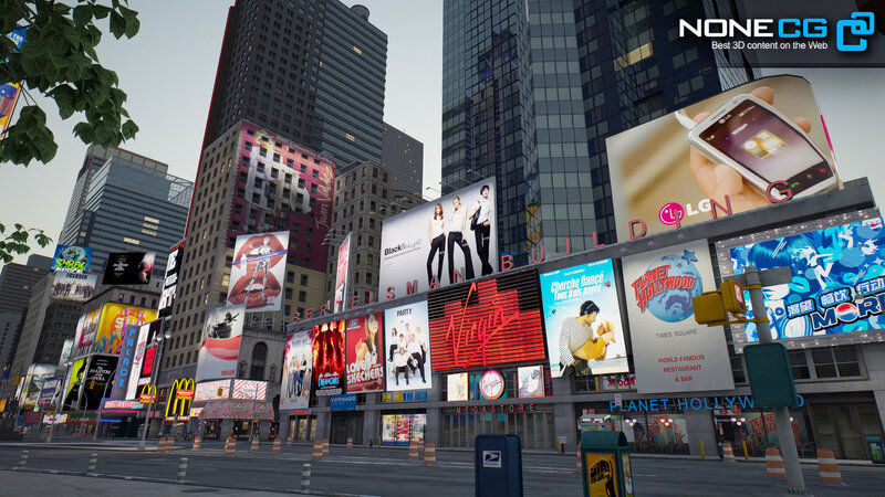 Very detailed and realistic representation of famous buildings, real advertisings pictures and videos to make the scene realistic.Includes part of Times Square.