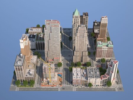 Highly detailed modular city containing detailed buildings, road tiles, street furniture, textures and more.