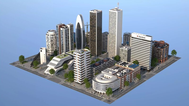 Highly detailed modular city containing detailed buildings, road tiles, street furniture, textures and more.