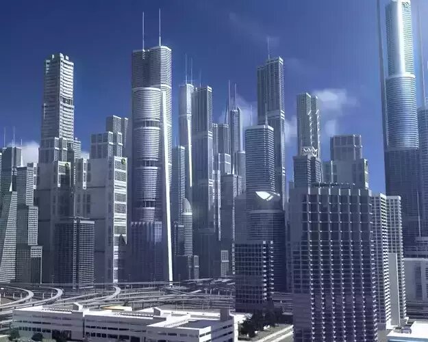 A 3D Freeway in a city environment with a sun light and 4k HDRI environment with built in glow lighting in the scene. This scene is Rendered with Mental Ray and has assigned shaders with textures.