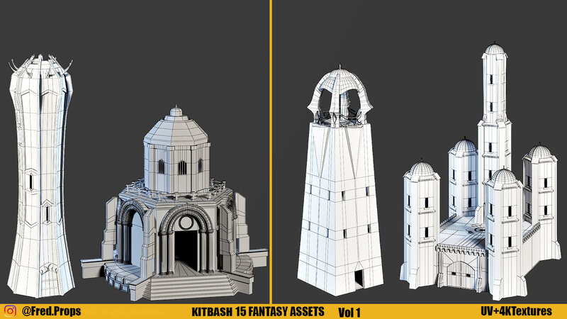 KITBASH : FANTASY KIT Including : 15 Models - 15 Texture Sets