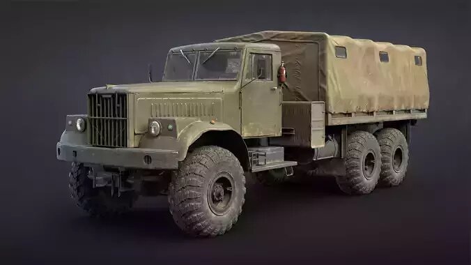 This is game ready 3d model of Soviet army truck KrAZ-255B.