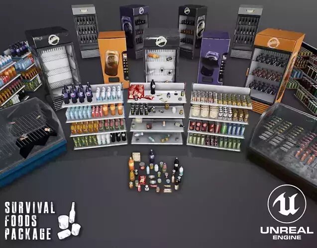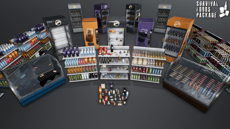 This package contains 30 Supermaket Props, incluiding: Canned Foods, Drink Cans, Vending Machines and more. With PBR Textures, Customizable Materials, Blueprints and Multi Texture Resolutions from 1024x1024 to 4096x4096.