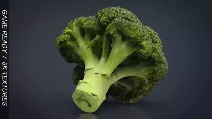 Photorealistic 3D model of a broccoli, ideal for high-quality renderings, product visualizations, advertising, real-time applications, games, and VR/AR experiences.