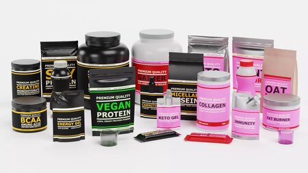 Sport Supplements - Complete Packaging Concept Collection Low-poly 3D model