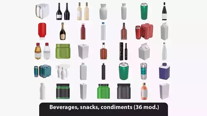Beverages snacks and condiments mock-up collection 3D model | CGTrader